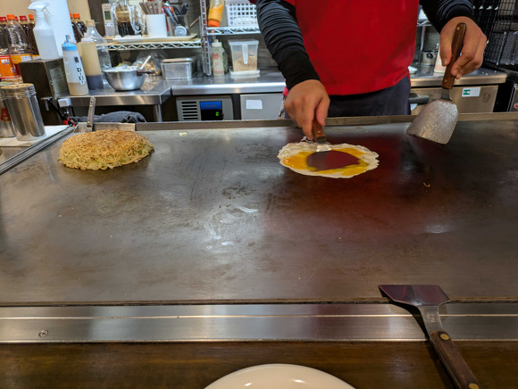 お好み焼きの焼き方が、非常に美しい!