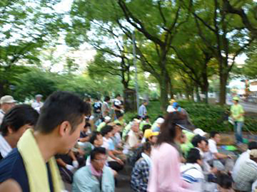 一生懸命掃除をしている人たちのすぐわきで、