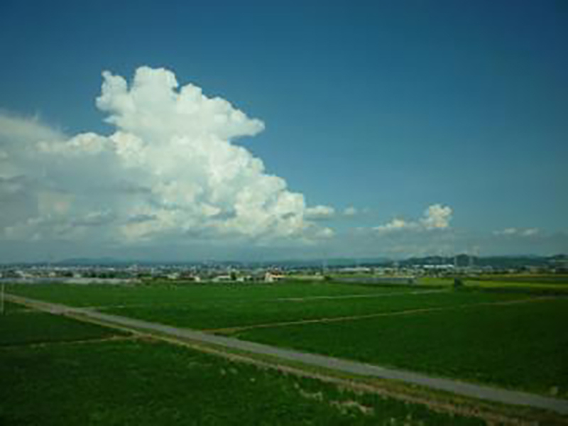 2010年08月31日(火) ブログ 東京への新幹線の窓から 本日は、打ち合わせのため東京へ出張。 東京へ向かう新幹線の窓から見えた夏空が雄大だったので、カメラに収めました。 豊橋の少し手前ぐらいでしたでしょうか。 夏の空って、なぜか見てて飽きないんですよねぇ。 これは浜名湖の夏空。 ずっと見ていたかったんですが、PCに向いメール送信。 富士山もきれいに見えるかと期待していたのですが、 メールやっていたら、全然富士山の横を通っていることに気づかず、 あれっと思ったときには、小田原でした・・・。