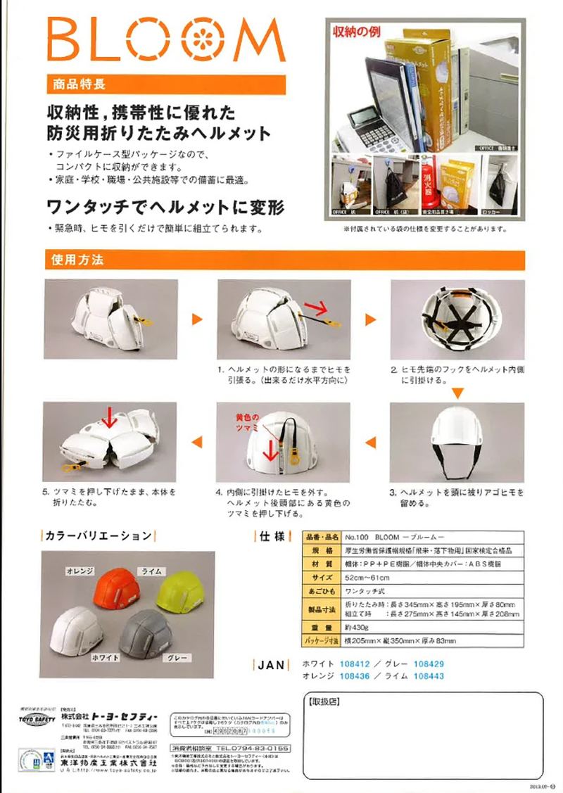折りたたみ式ヘルメットをオフィスに常備することで、