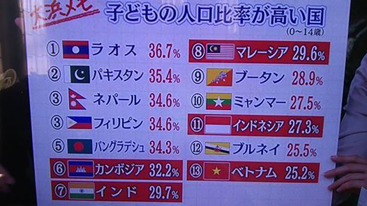 子供が多いってことはそれだけで将来の国力の強さにつながるよなぁ。 ちなみに、日本の0~14歳は13%。 ~2014年8月4日WBSより