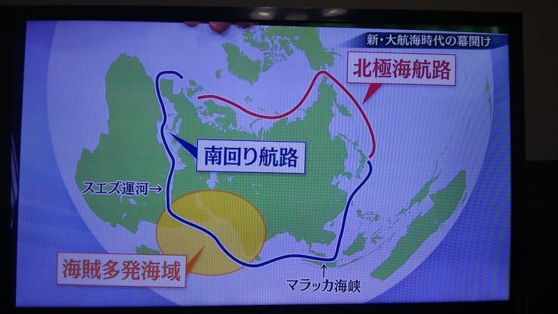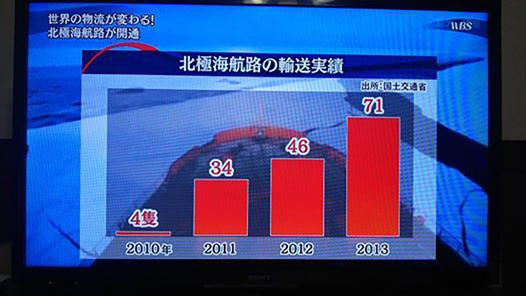 北極海航路がいよいよ本格的に動き出しているようです。 コスト削減になるといって、喜んでいいもんかどうか・・・。 ~2014年8月25日WBSより
