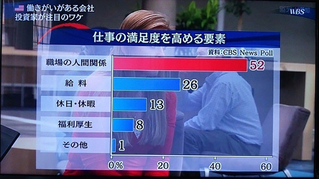 2014年09月03日(水) ブログ 働きがいがある会社 これは真理だなぁ。 組織の中の人間関係でも、横の関係もさることながら、 上下の人間関係が良好なほど業績はいい。 いかに人間関係を良好に保つか、 それを戦略的に取り組むことが求められる時代ですね。