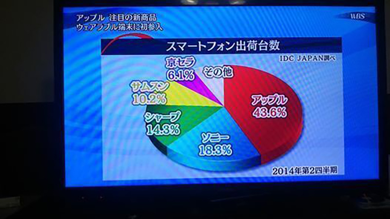 2014年09月13日(土) ブログ ウェアラブル端末 9月9日、アップルがウェアラブル端末を発表しました。 ソニーファンの私としては、 アップルではなく、ソニーにこうした製品を 開発してもらいたかったんですけどねぇ。 まぁ、ソニーといわず、日本の企業に・・・。 個人的には、PSとかゲーム機器に注力してないでほしいわ。 ちなみに、私のスマホは、シャープ製です。 ~2014年9月9日WBSより