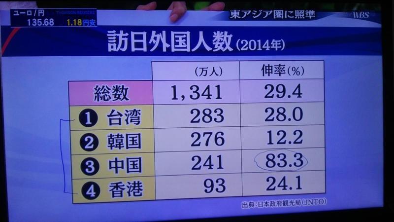 インバウンド、中国の伸び率すごいなぁ。 ~2015年2月11日WBSより