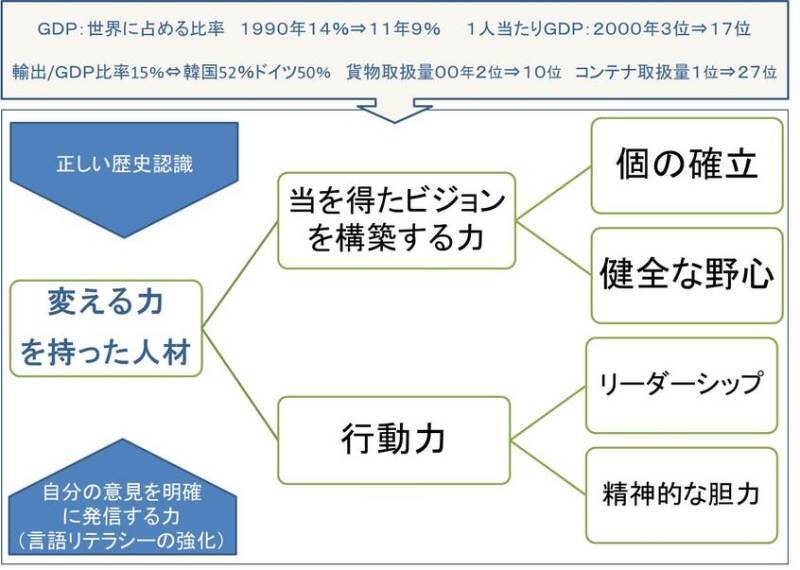 日本が再生、繁栄の道に進むには、戦後の高度成長を前提にした規制、制度、組織、国民の意識などの枠組みを大きく変えなければなりません。つまり、日本では「変える力」を持った人材が今、最も求められているのです。では、「変える力」とはなんでしょうか?