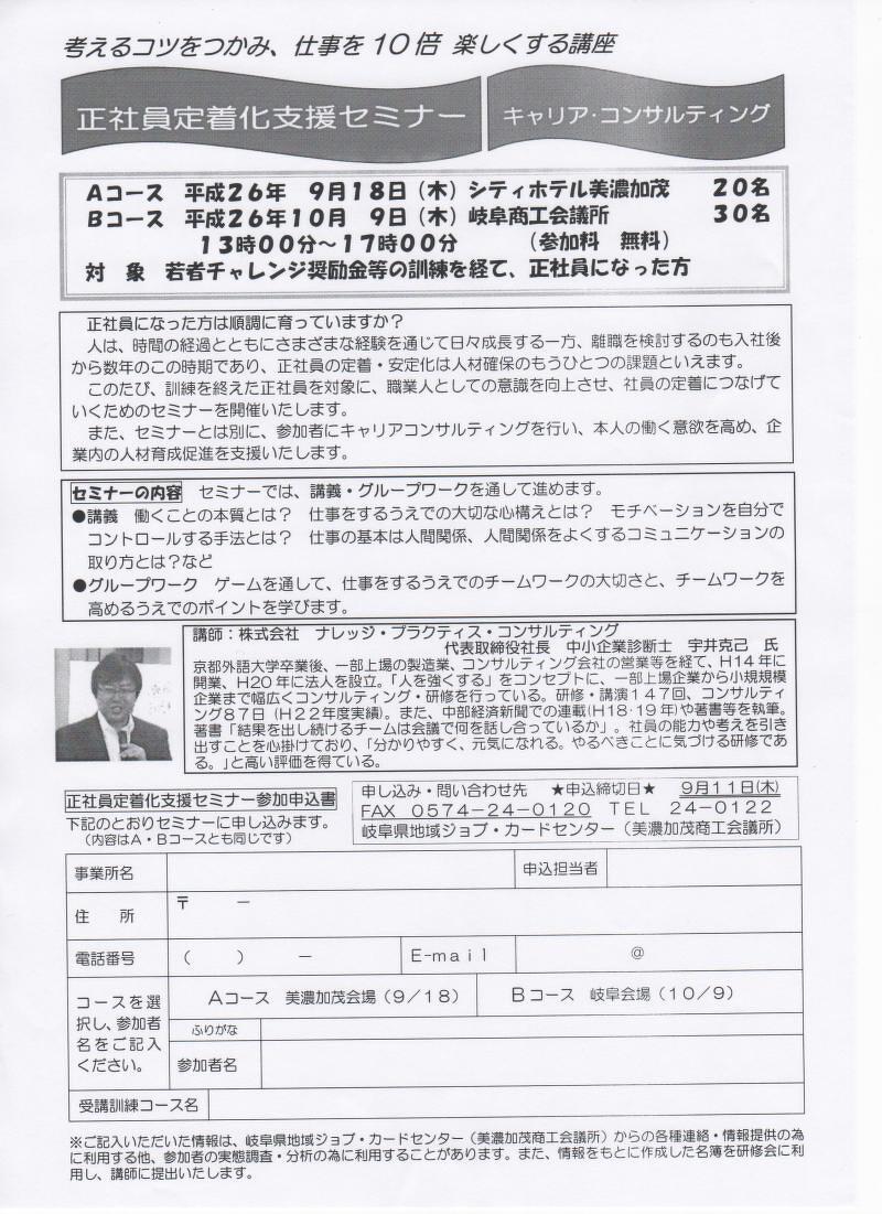 【正社員定着化支援セミナー(美濃加茂商工会議所主催)のご案内】
