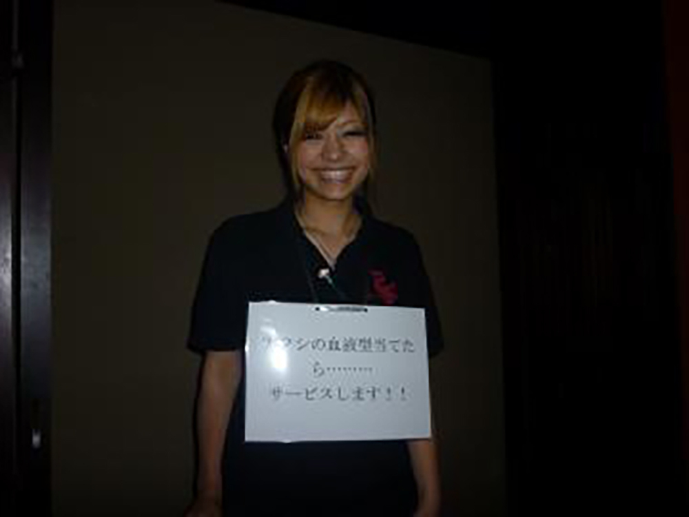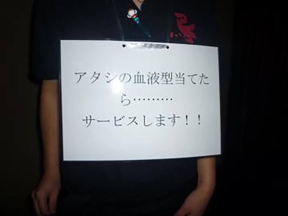 オヤジ連中は、血液型当てるのに、もう必死です。